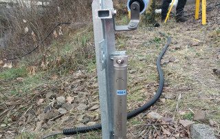 Insgesamt werden 9 Rohre mit Messketten ausgestattet. Der Abstand der HSD4 Sensoren beträgt 3 m. Die Messketten werden händisch in die Rohre eingeschoben und mechanisch arretiert. Alle Sensoren sind miteinander verschlaucht, sodass ein zusammenhängender Horizont aufgespannt werden kann. Aktuell kommt hier unser Messsystem „HYDROSKATE“ zum Einsatz, das permanent und hochgenau auch geringste Horizontverschiebungen im Rohrschirm aufzeichnet bzw. überwacht.