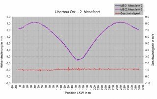 Die Messfahrten wurden unter Wiederholbedingungen durchgeführt. Messfehler in Folge von Beeinflussungen des Schlauchwaagenmesssystems können ausgeschlossen werden. Die Verformung der Überbauten konnte mit dem Messsystem PC 200-D mit der erforderlichen Genauigkeit bestimmt werden.